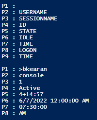 $Header = 'UserName','SessionName','ID','State','IdleTime','LogonTime'